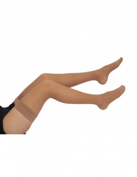 Media hasta el muslo con silicona que brinda elegancia y prevención.