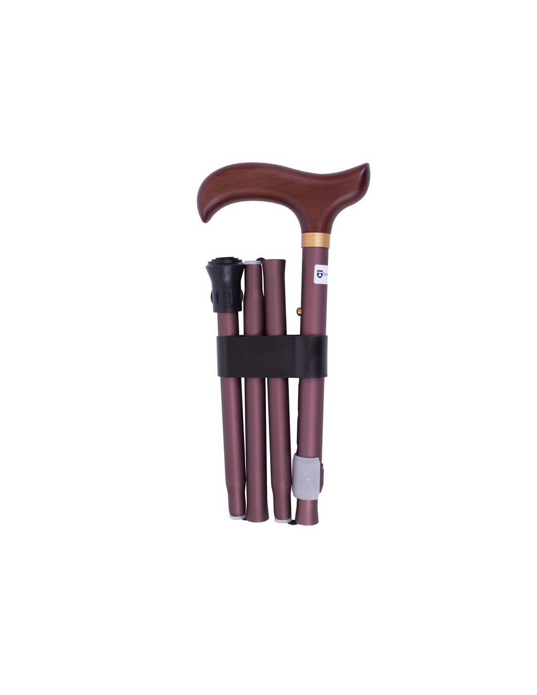 Bastón de apoyo plegable de aluminio con altura ajustable y tope antideslizante. Diseño elegante con puño anatómico.