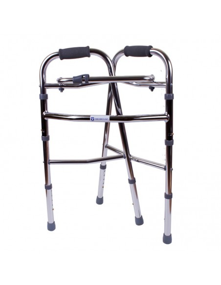 Liviano andador plegable, lo que lo hace muy cómodo para guardar y transportar. Cuenta con la opción de dejarlo fijo o "paso a paso" y su altura es ajustable entre 78 y 96cm.