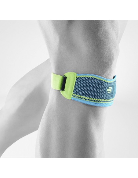 Soporte patelar deportivo que ayuda a reducir el dolor descargando el tendón rotuliano.